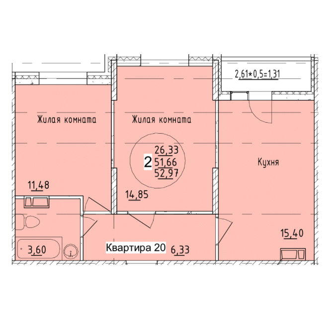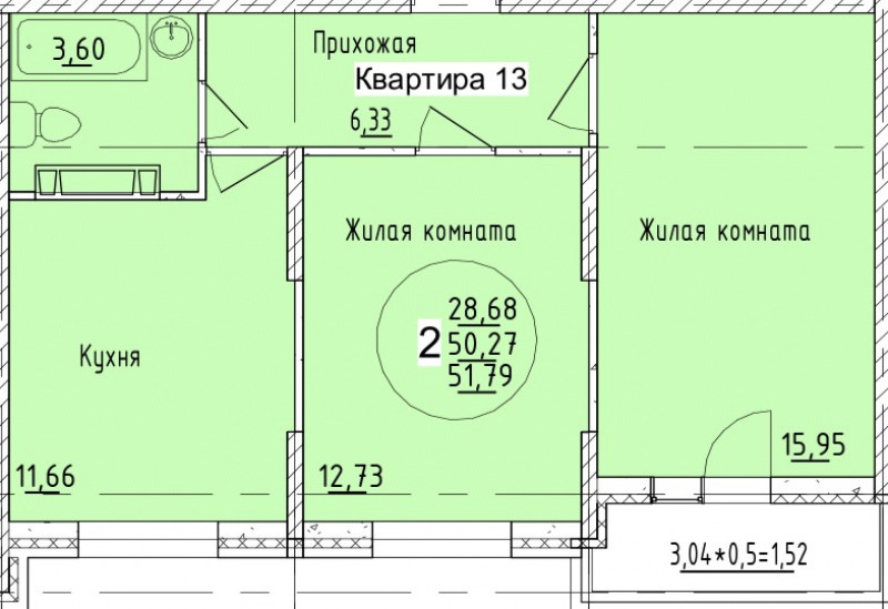 Площадь — 51,79 м²