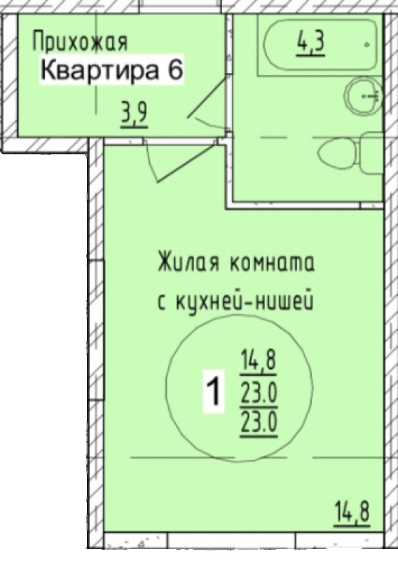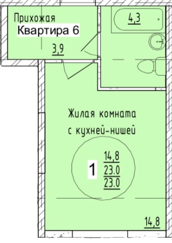 Площадь — 23 м²