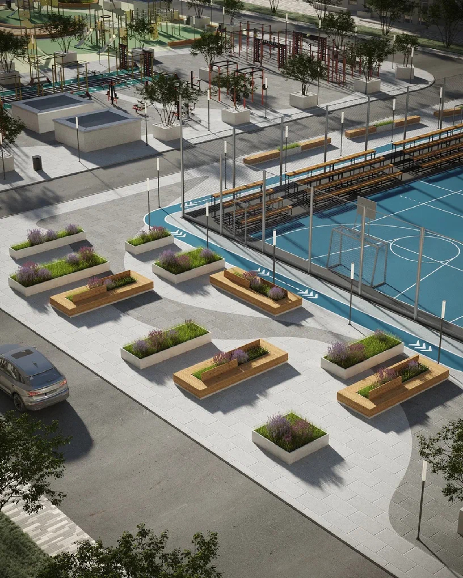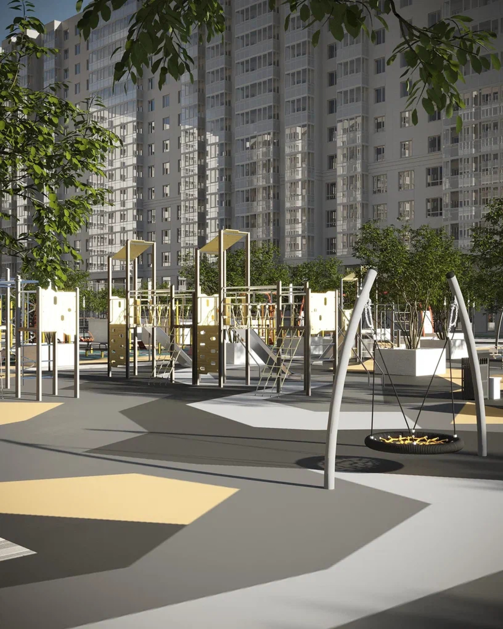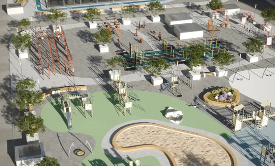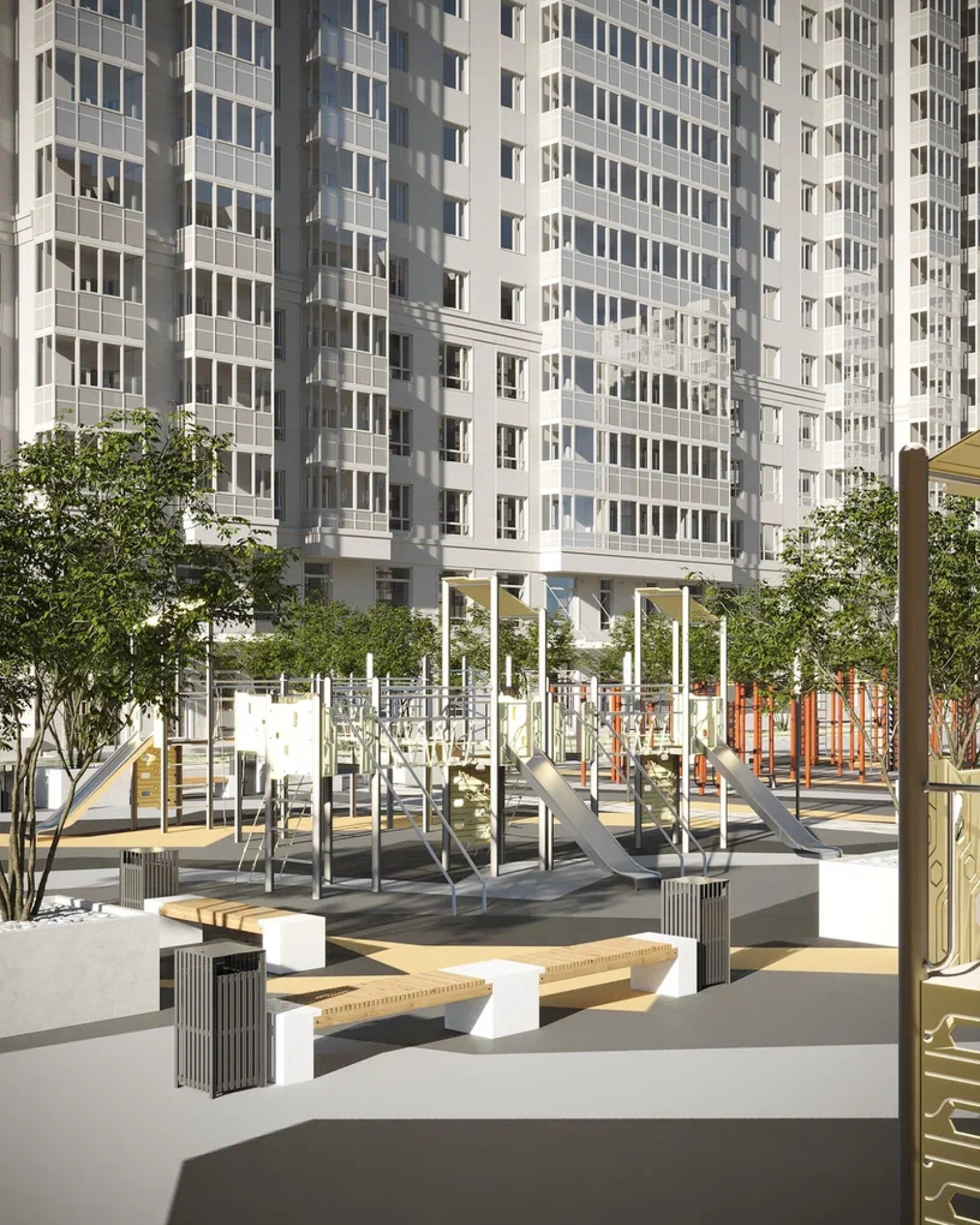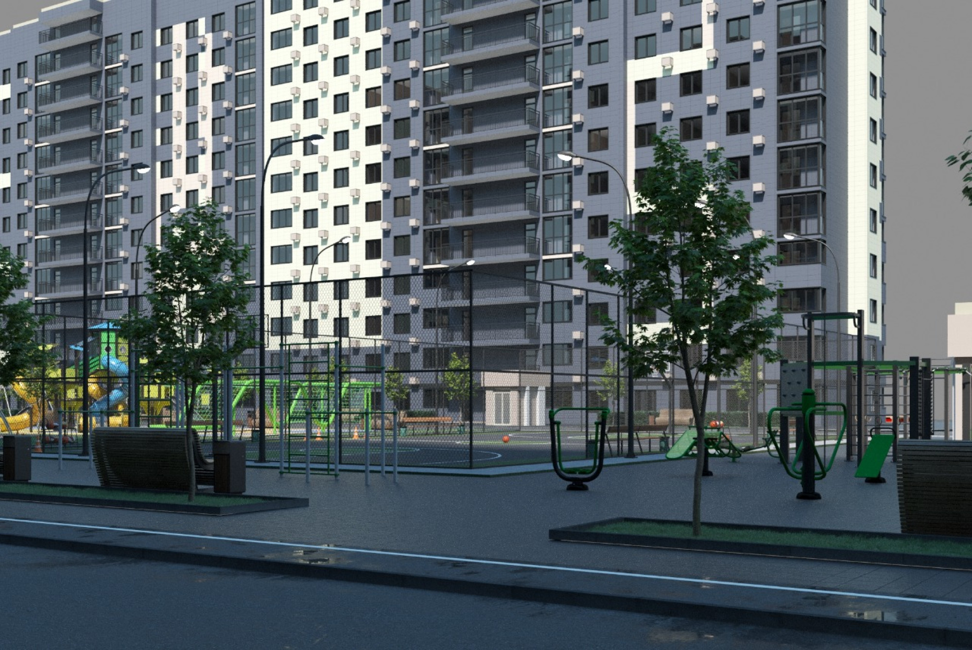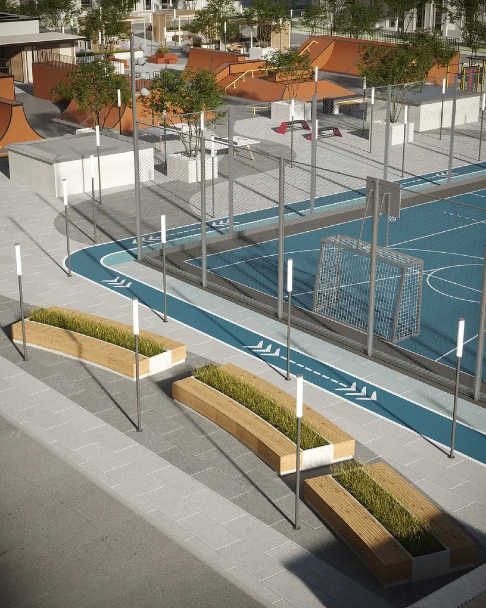транспортная развязка, магазины, места отдыха и развлечений, парковые зоны.