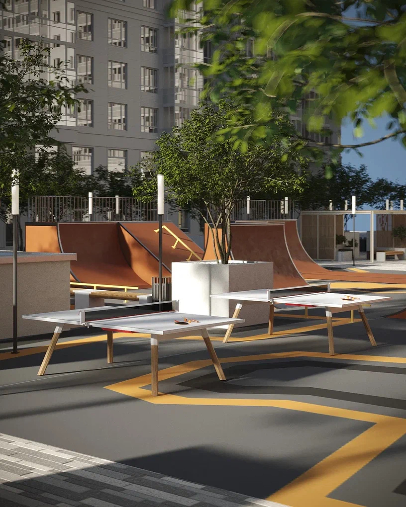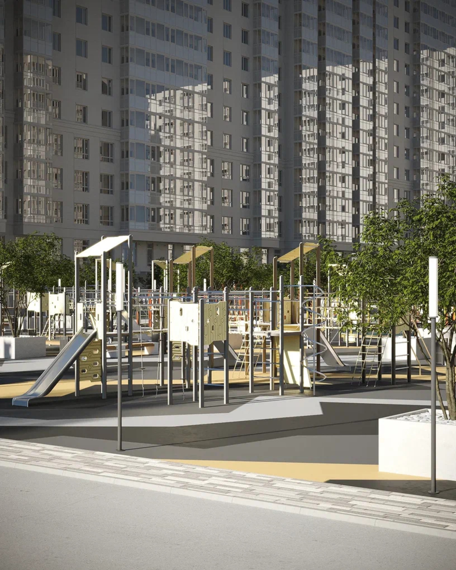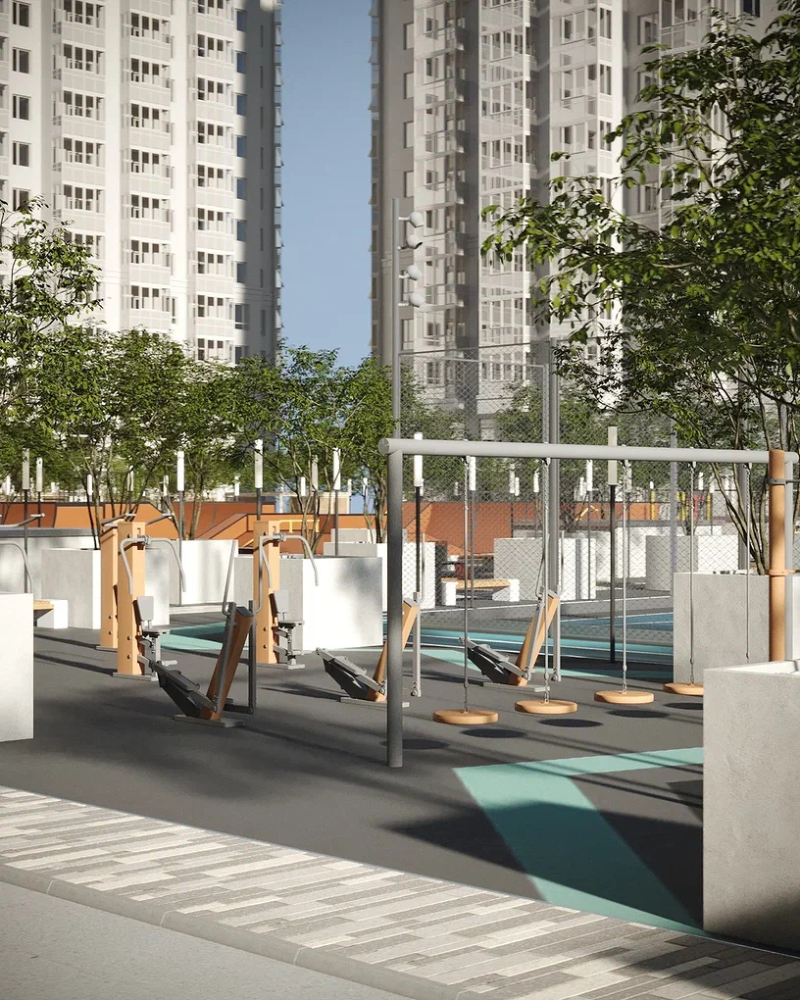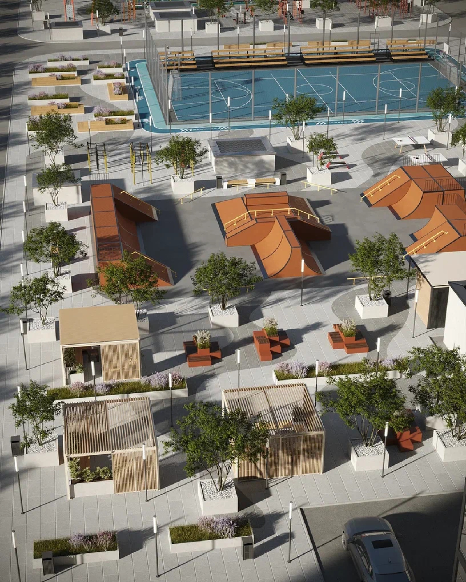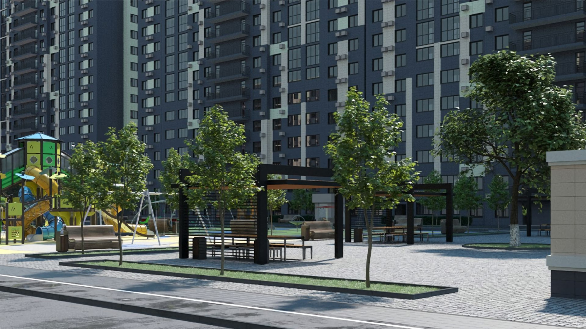 транспортная развязка, магазины, места отдыха и развлечений, парковые зоны.