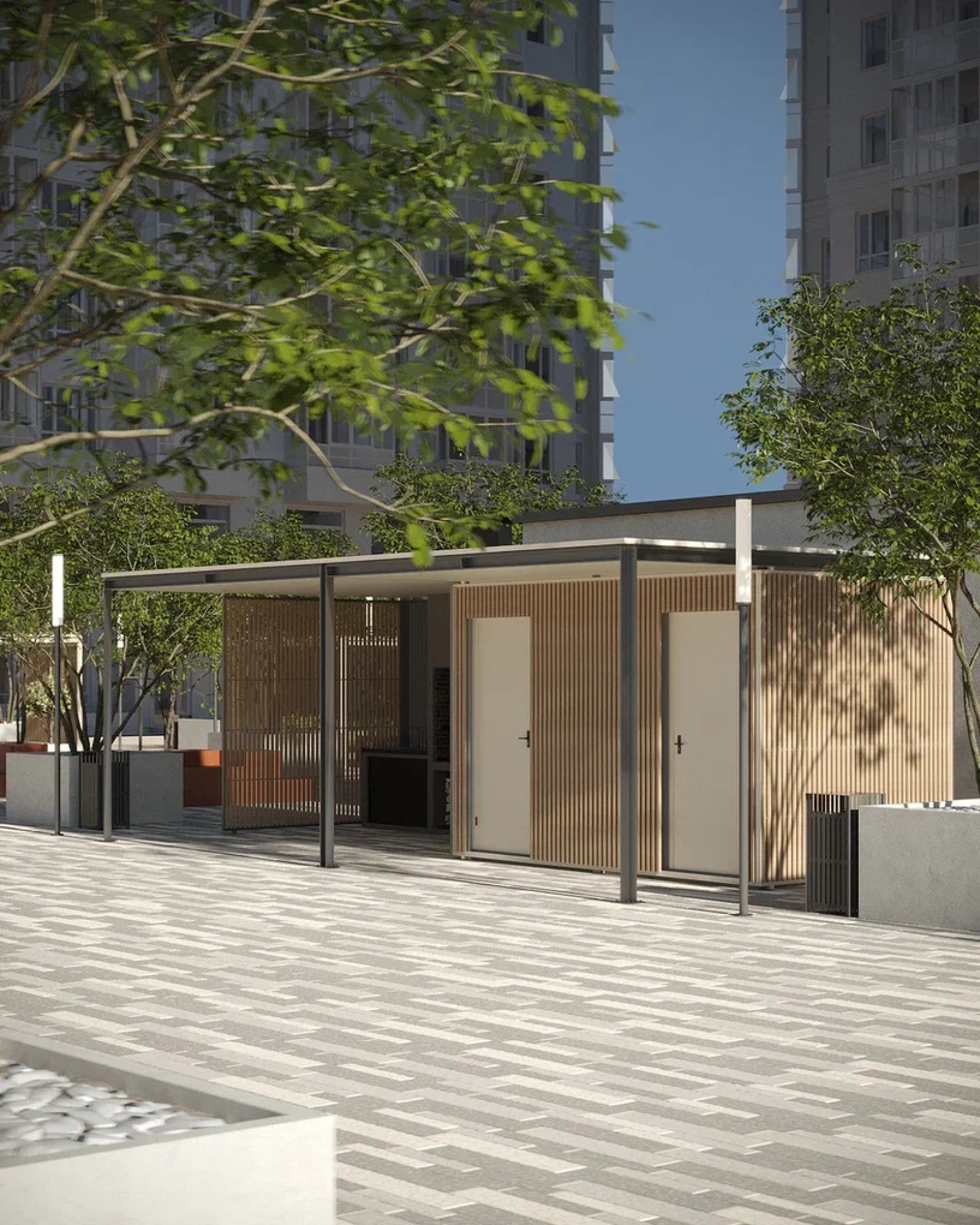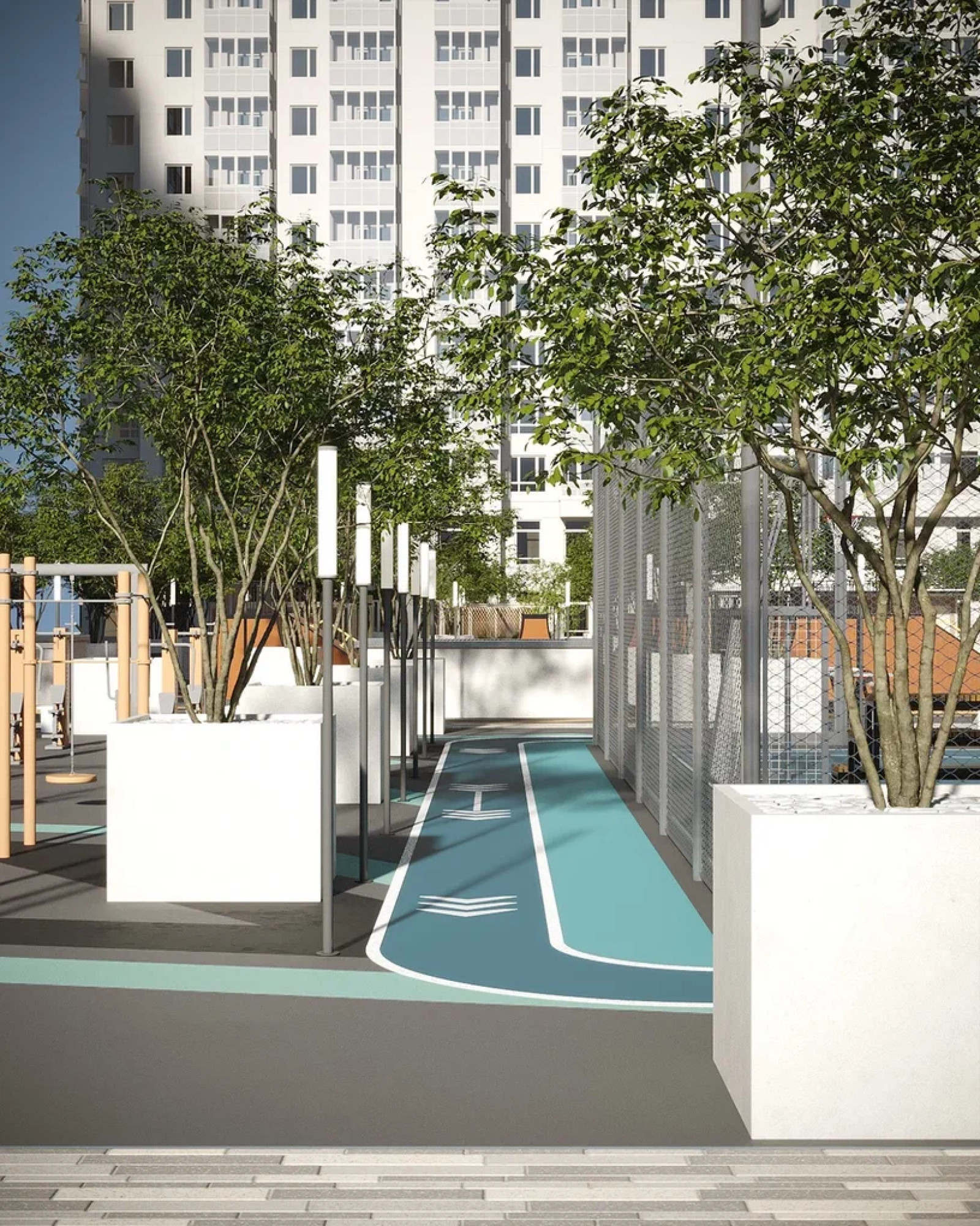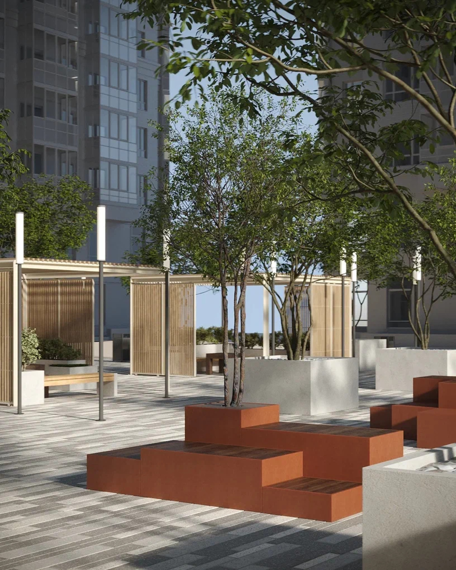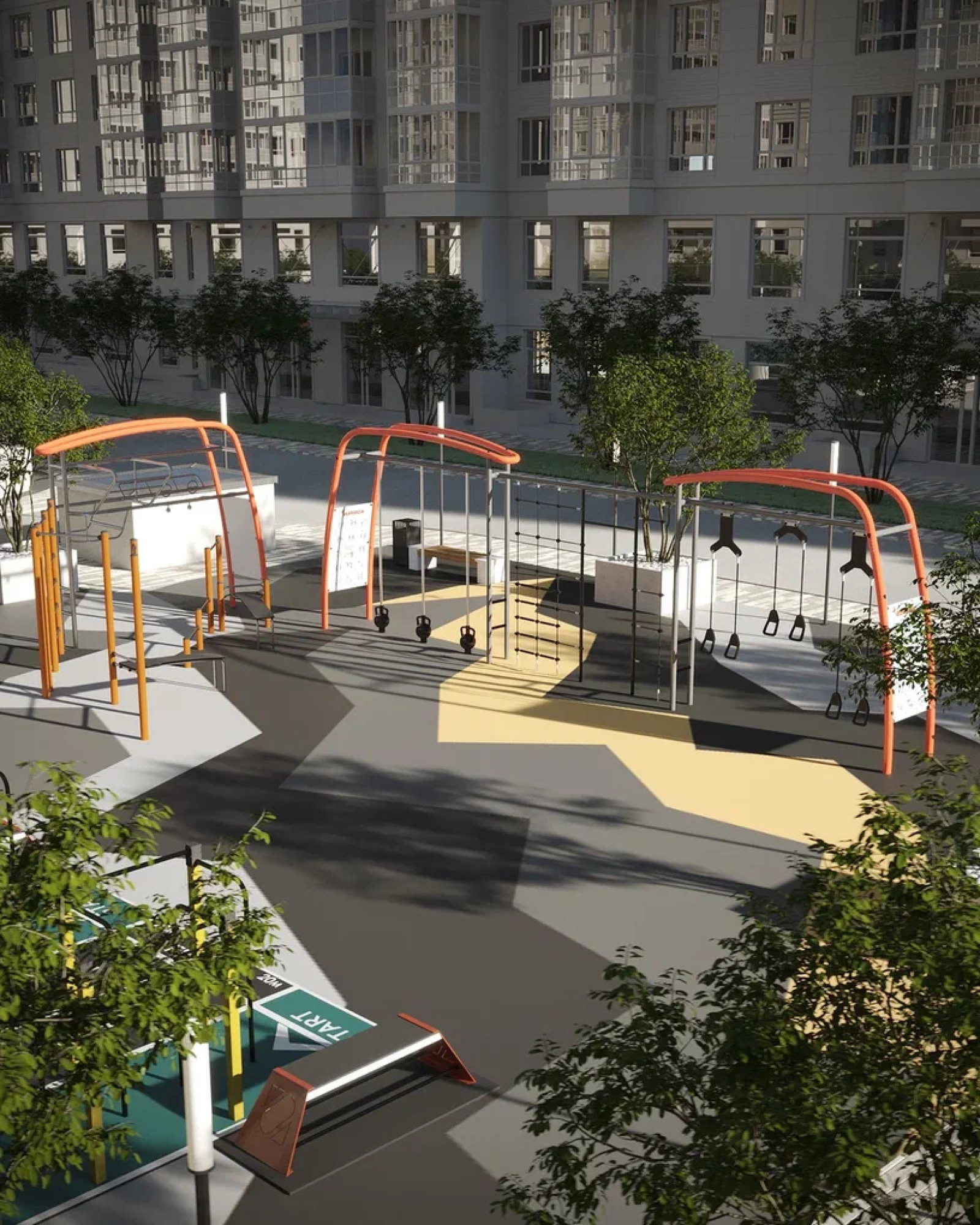 транспортная развязка, магазины, места отдыха и развлечений, парковые зоны.