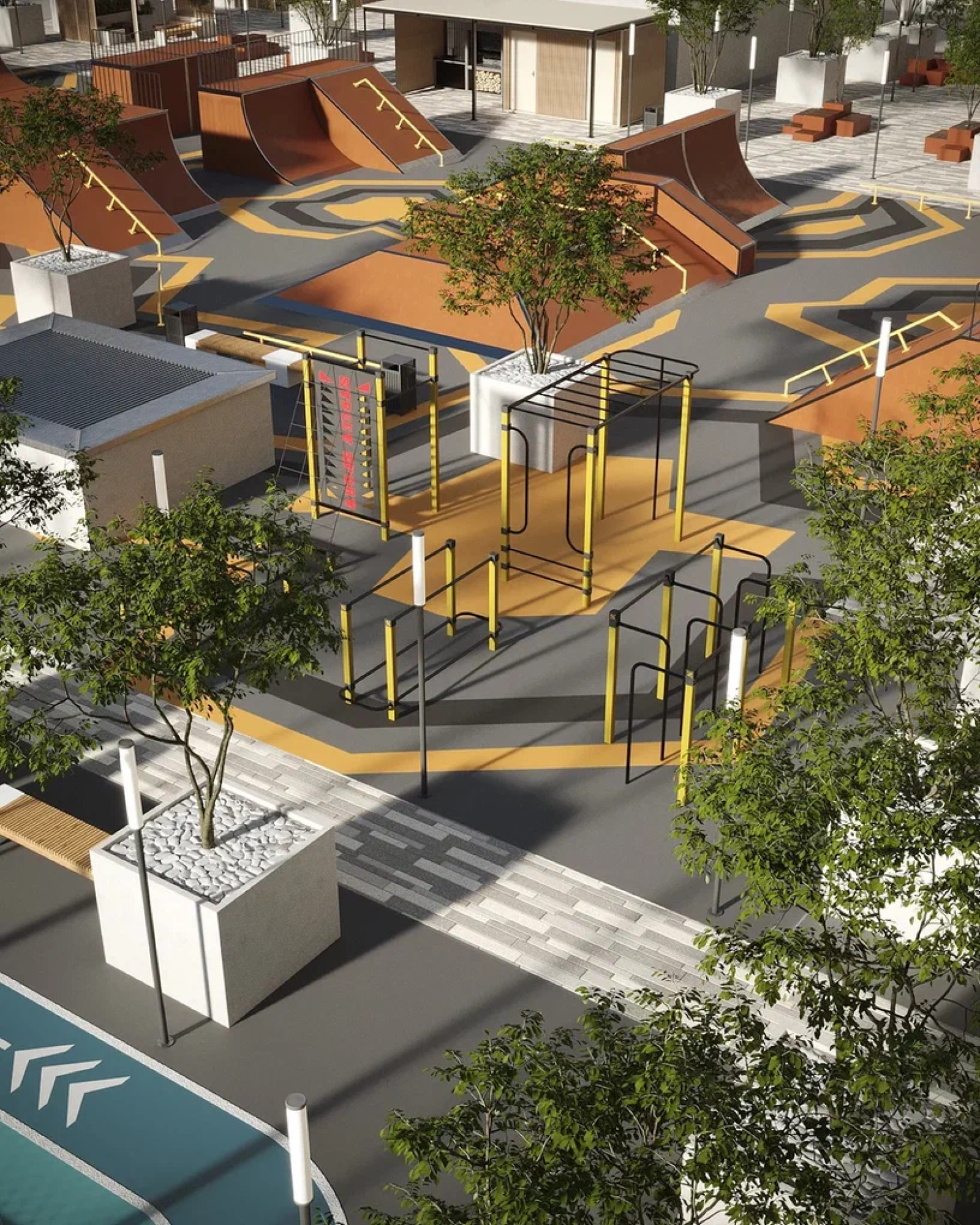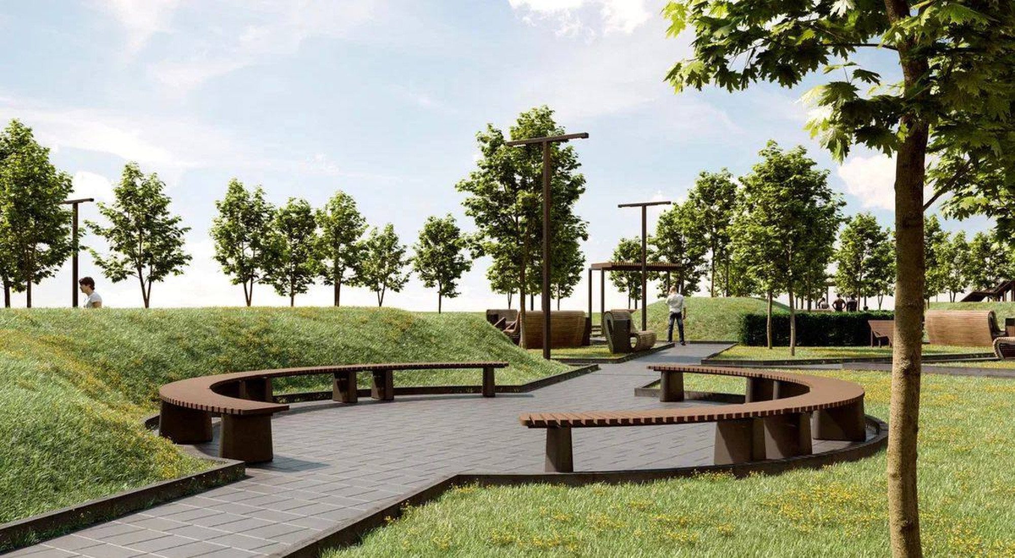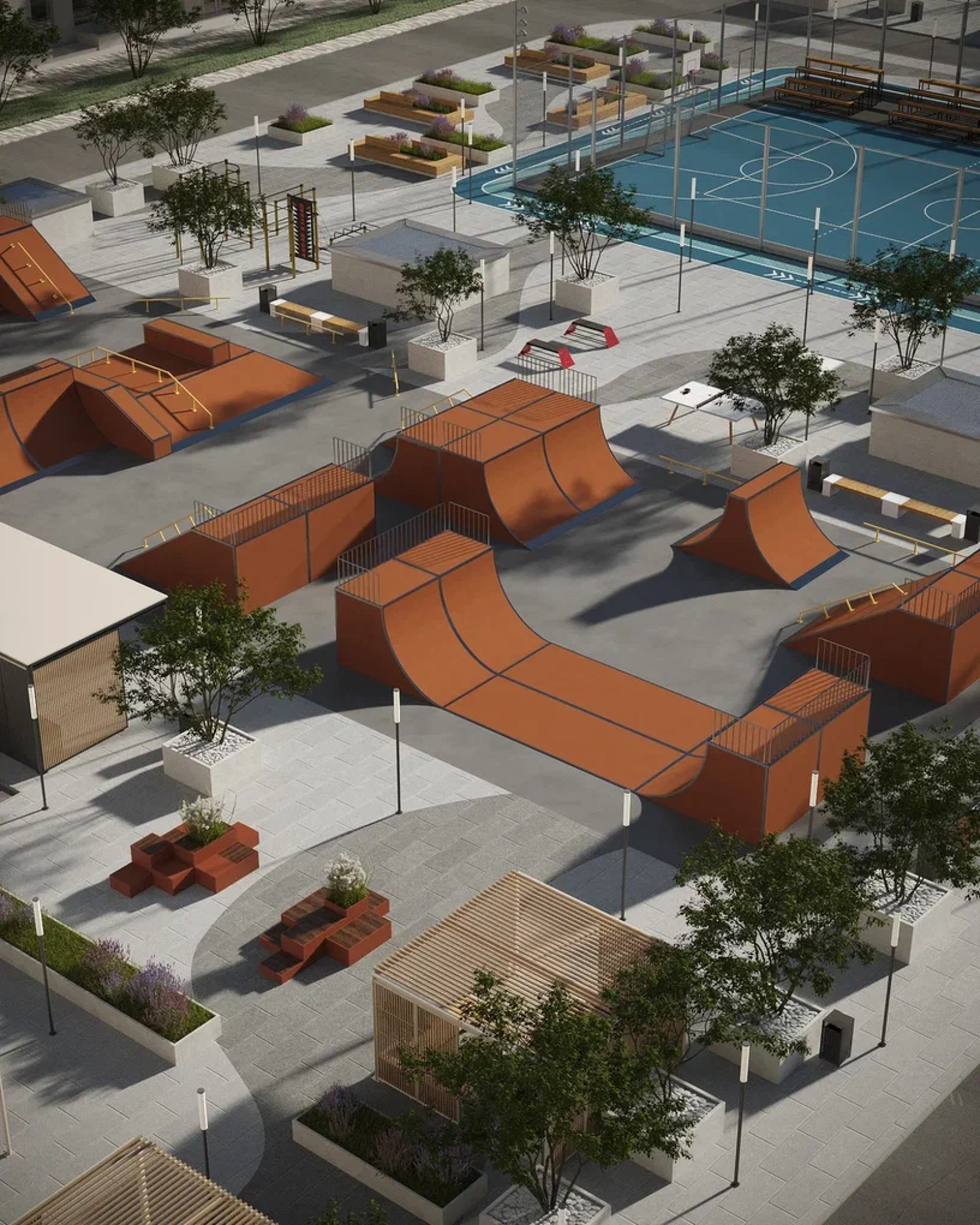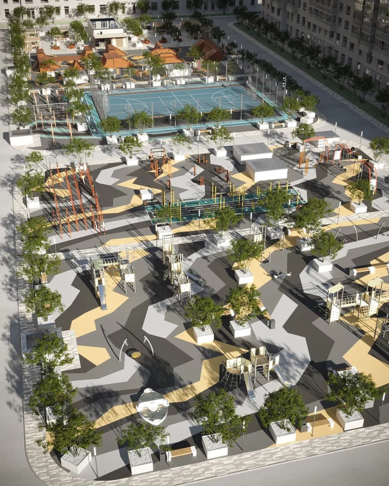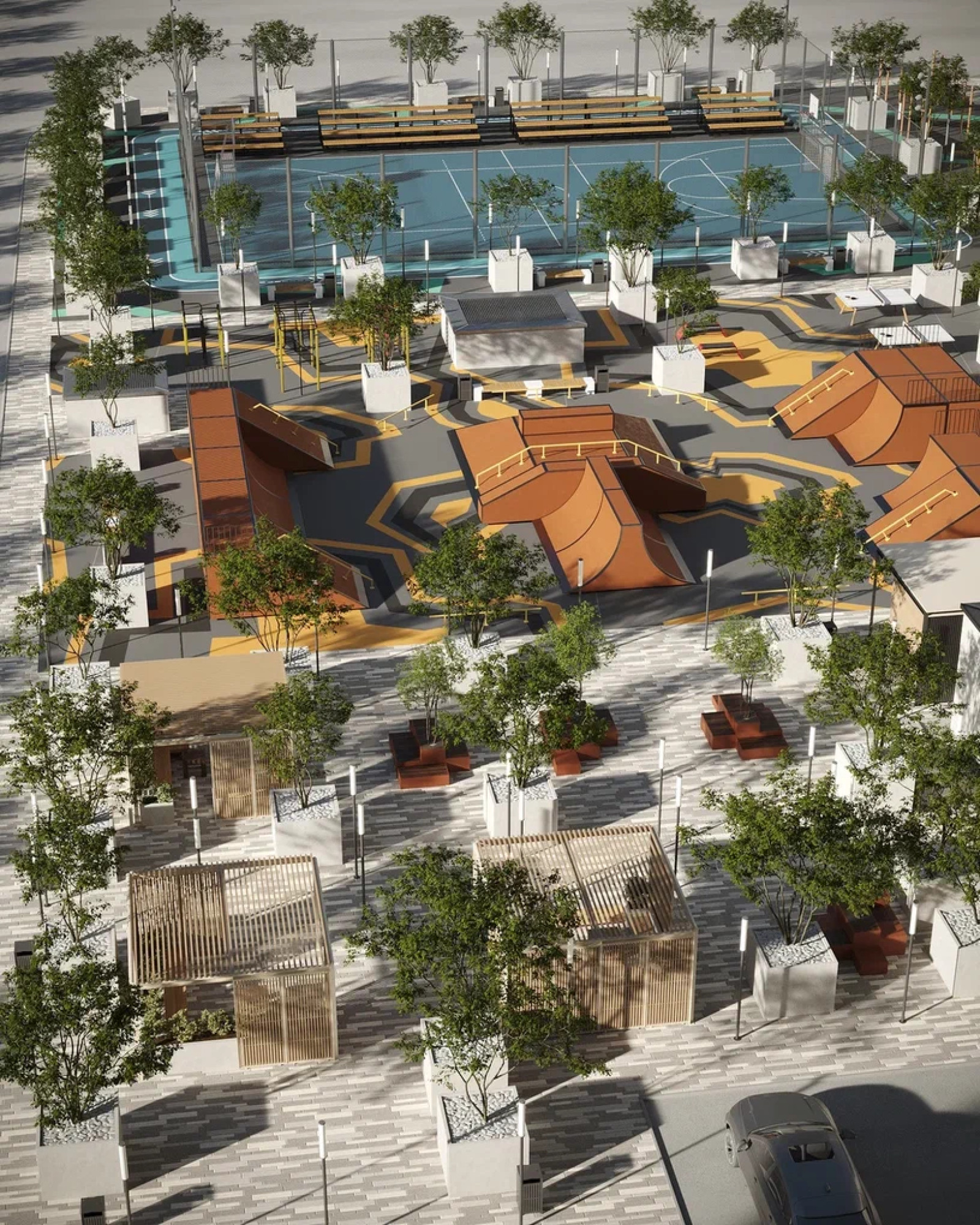 транспортная развязка, магазины, места отдыха и развлечений, парковые зоны.