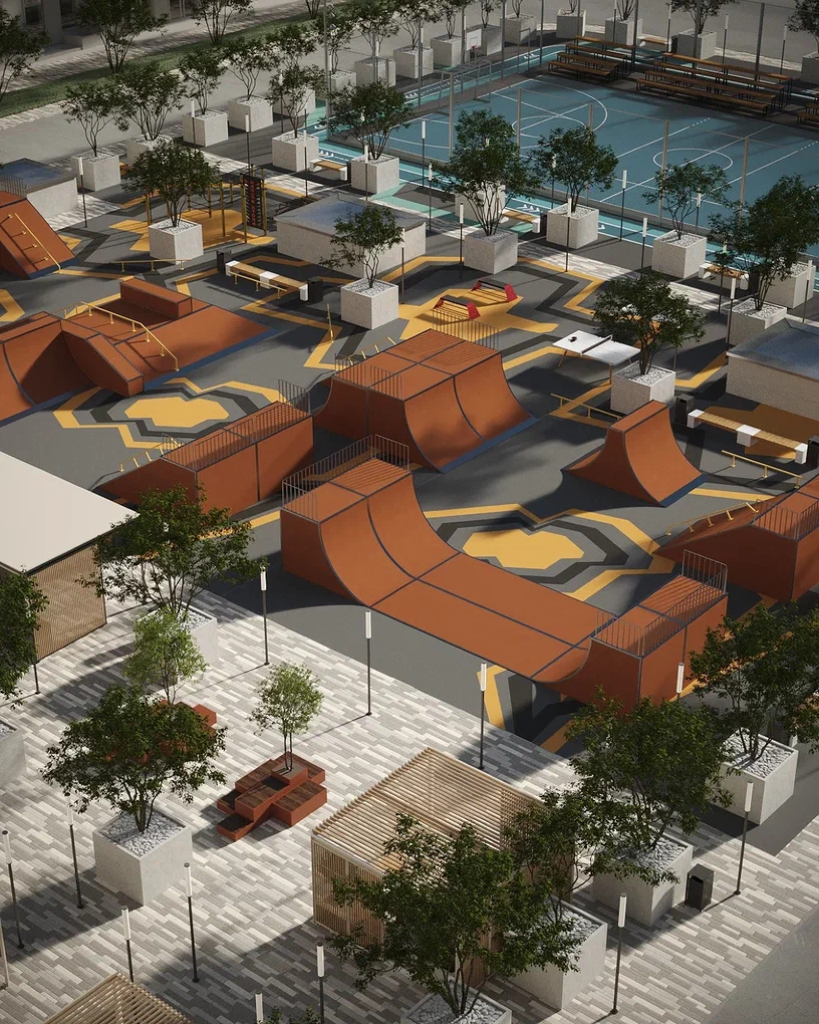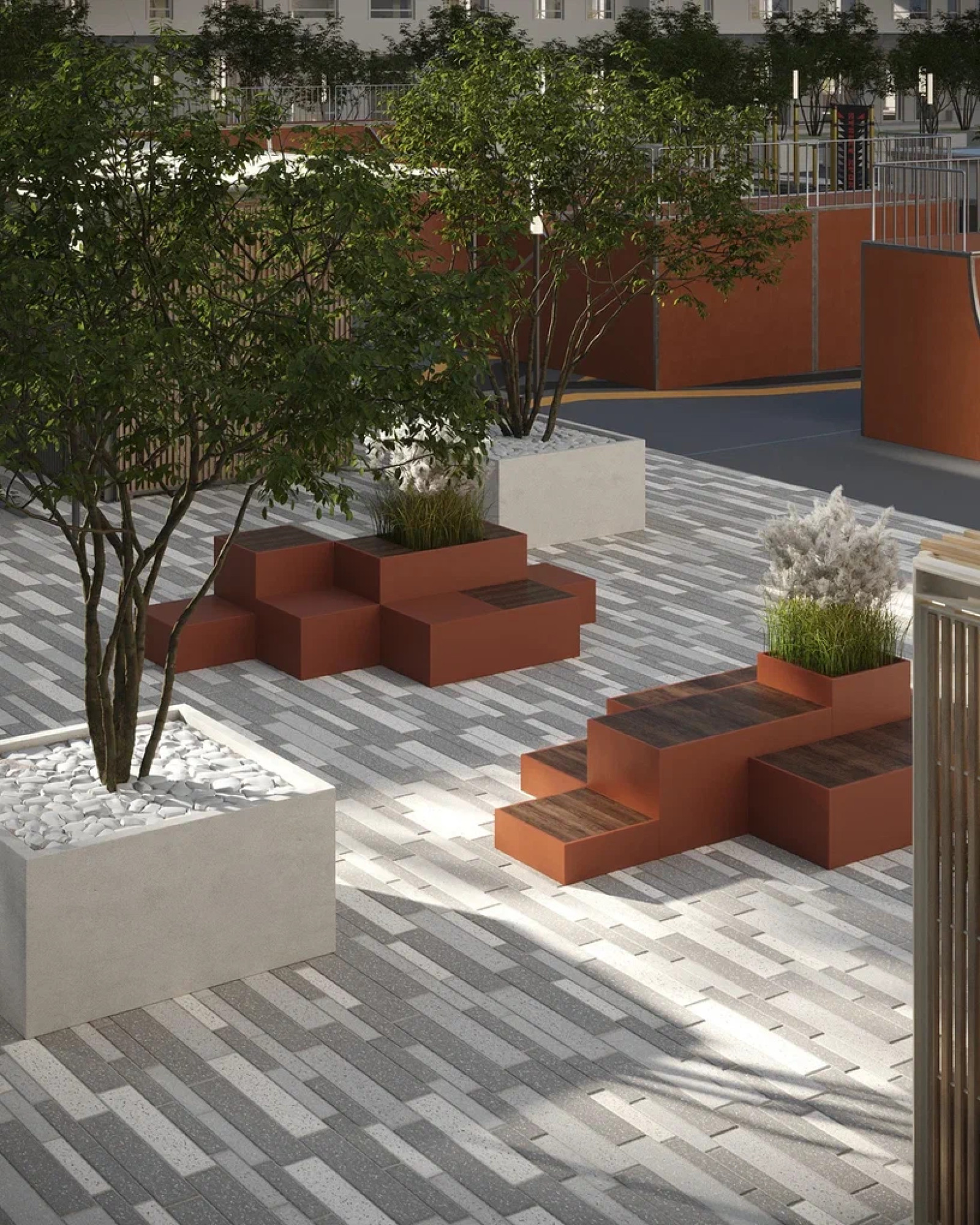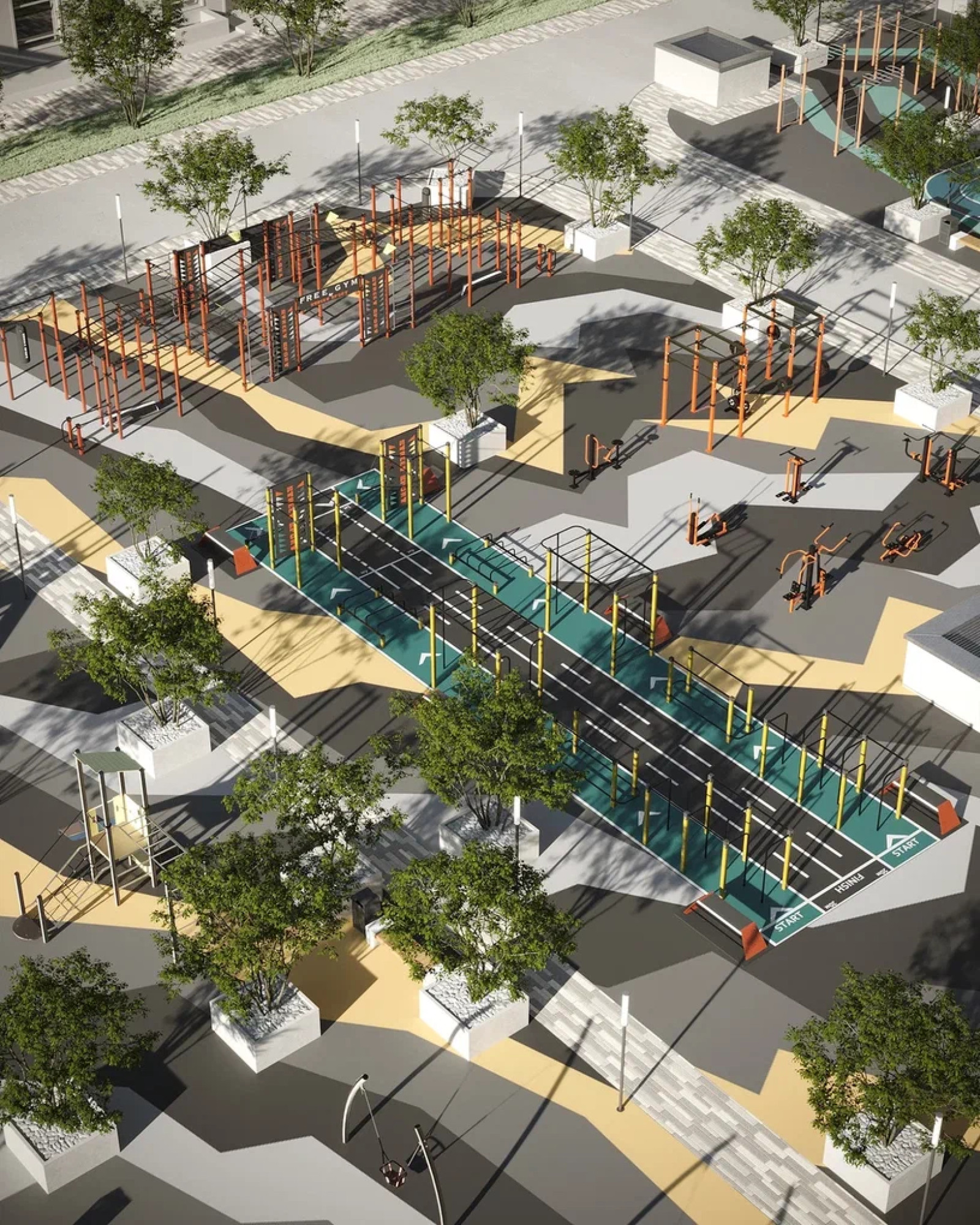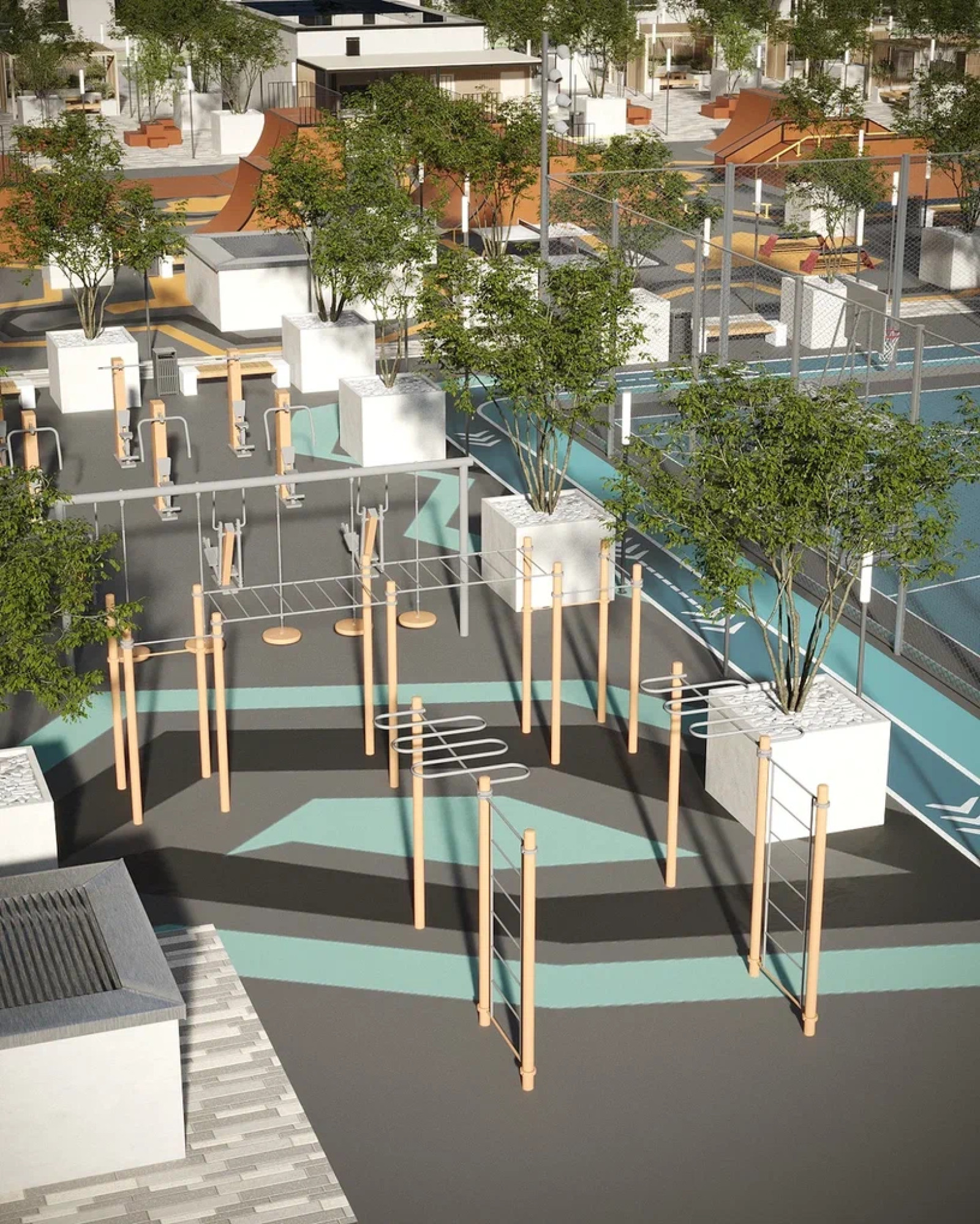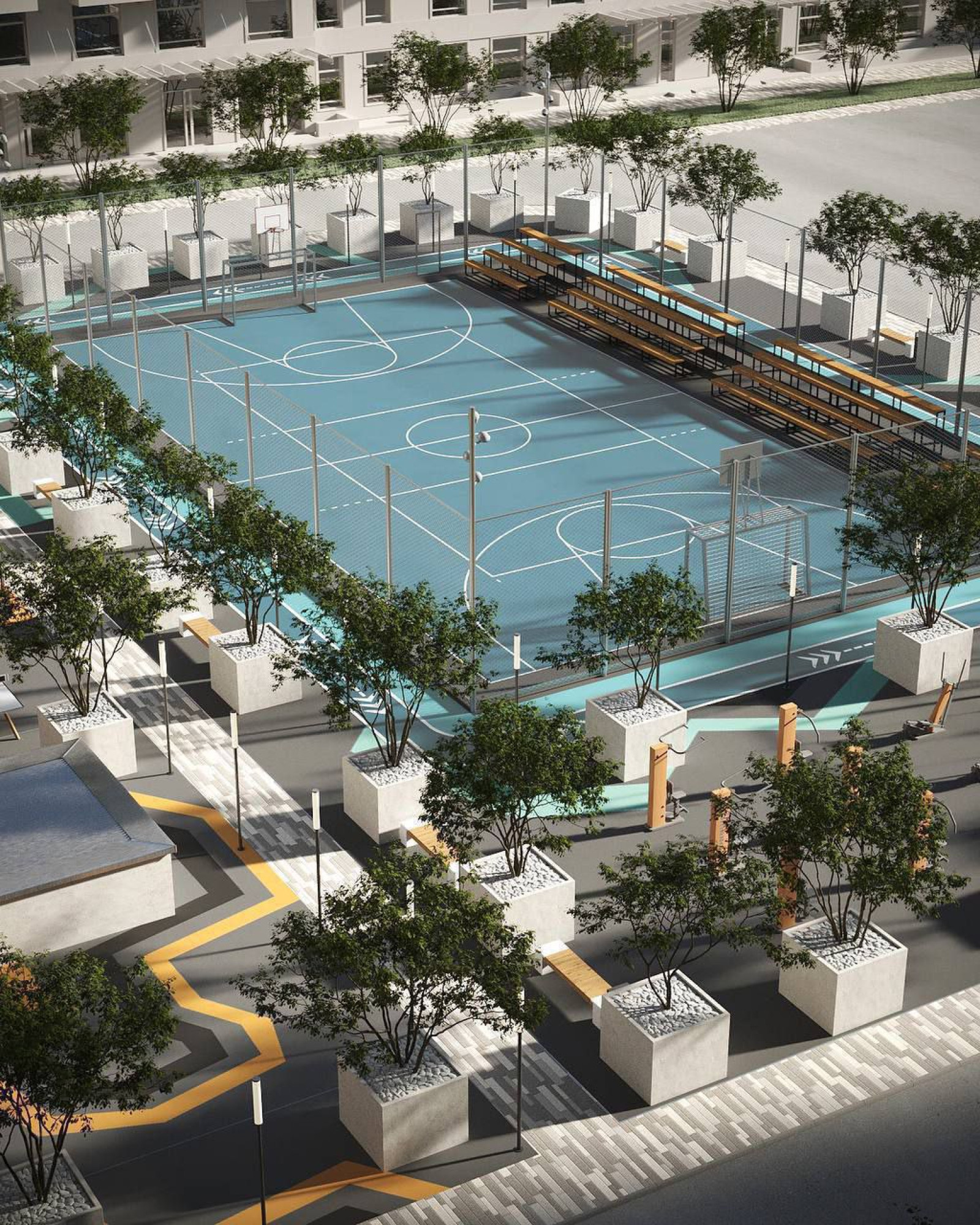 транспортная развязка, магазины, места отдыха и развлечений, парковые зоны.
