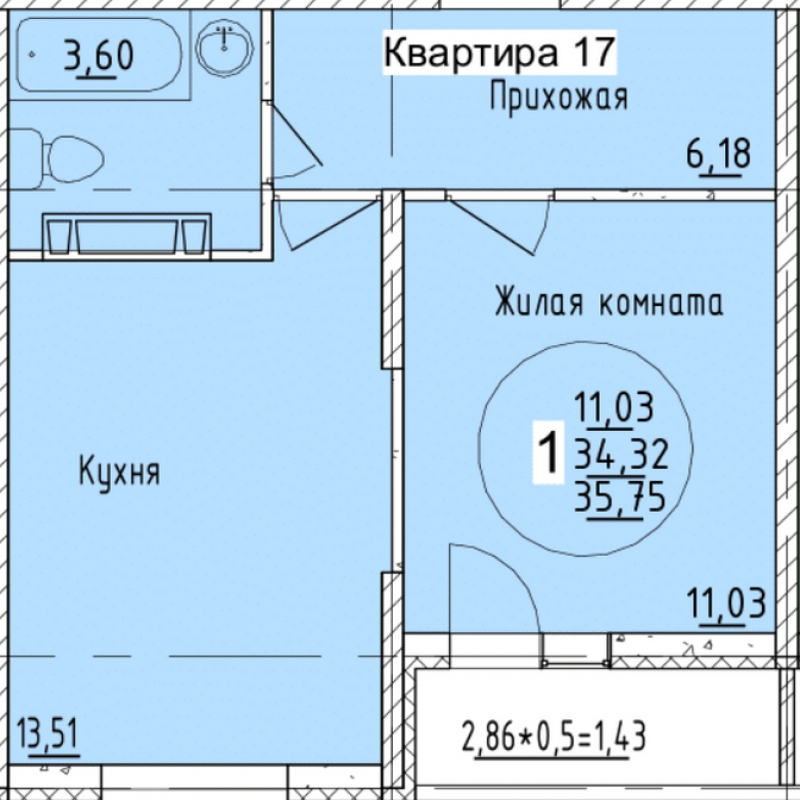 Площадь — 35,75 м²