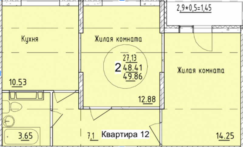 Площадь — 49,86 м²